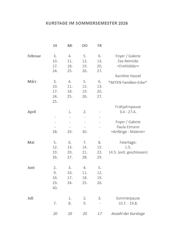 KURSTAGE IM WINTERSEMESTER