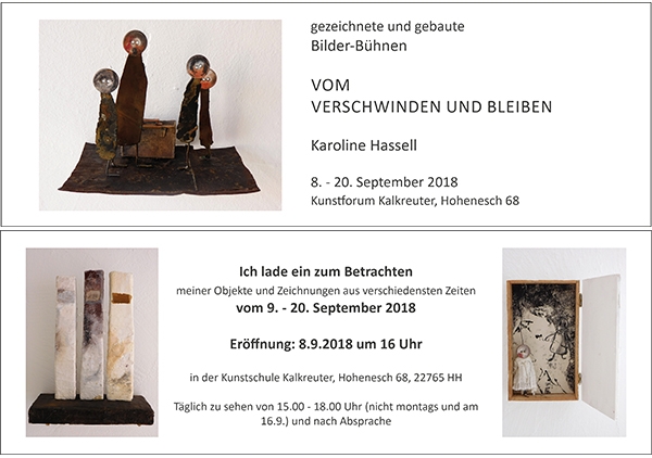 8. - 20. September 2018 // Kunstforum Kalkreuter, Hohenesch 68 [1] [2] [3] [4] [5] [6] [7] [8] [9] [10] [11] [12] [13] Vorschau - Rückschau